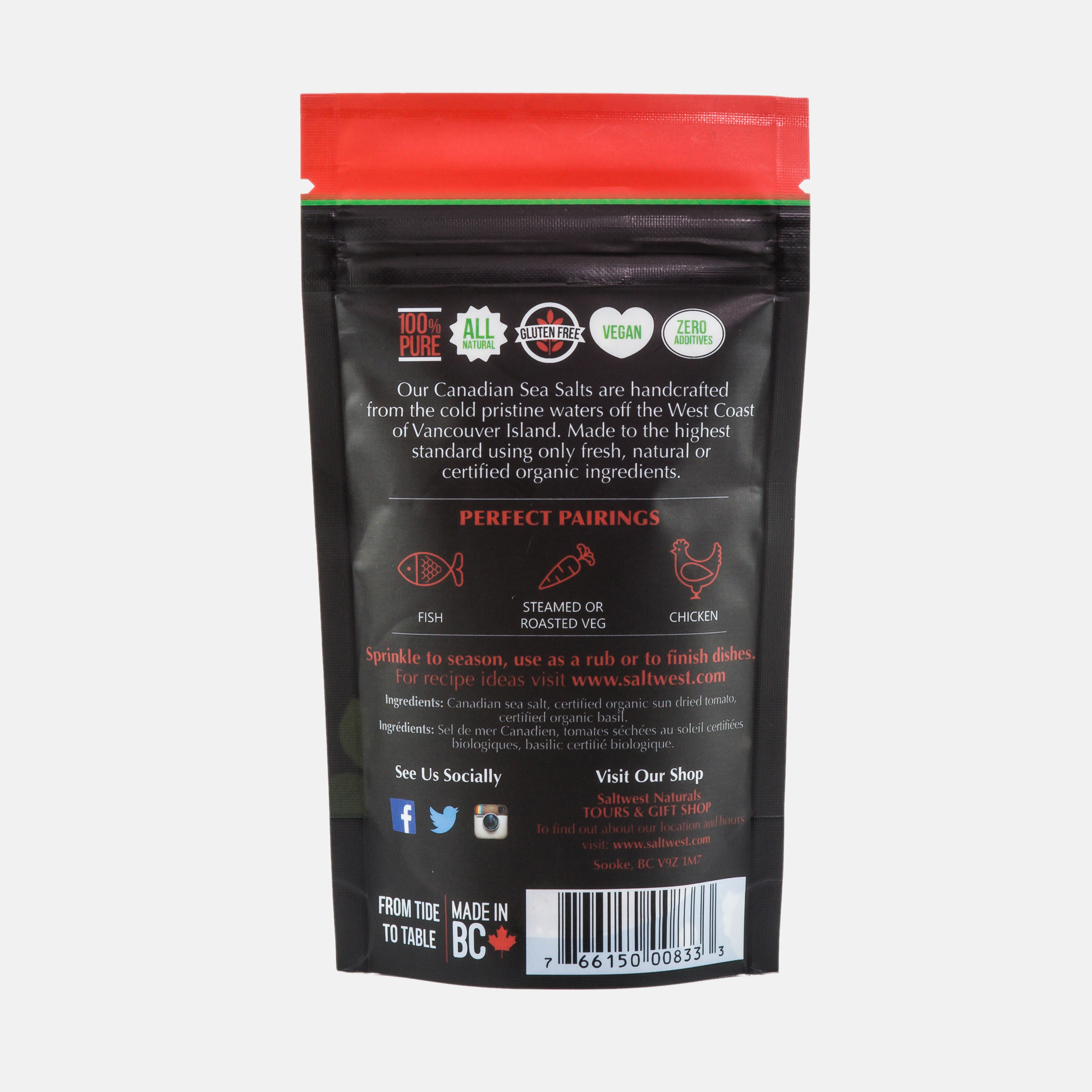 This savoury sea salt is anchored by tomato then blended with basil making this a delicious seasoning for pasta salads, flatbread pizza or to finish off bruschetta. Create an easy salad dressing by mixing it with oil & vinegar or seasoning for veggies, fish & chicken. Delight your guests with this Mediterranean gourmet blend.